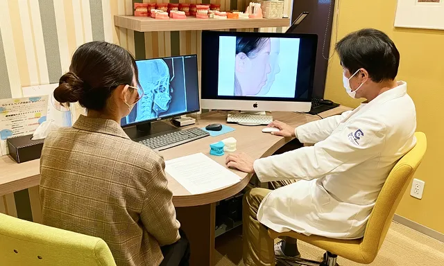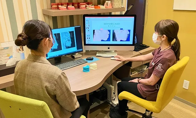 精密検査の結果をもとに、現在の状態と治療方針をご説明します。歯や骨格の分析結果、想定される治療後の変化をシミュレーションで確認しながら、治療期間や費用についても丁寧にご案内します。