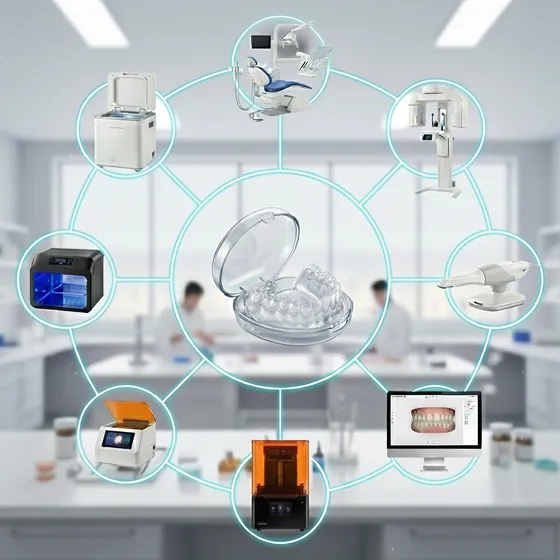 診断データをもとに設計された治療計画を、院内3Dプリンターを用いてマウスピース化。